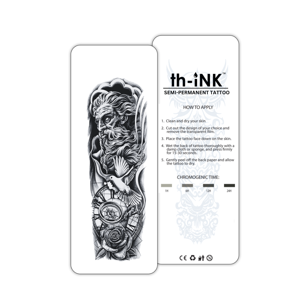 Step into the world of th-INK with our GZQB Series 155mm x 465mm semi-permanent tattoo, designed to last up to two weeks. Whether you're looking to try something new or add a temporary flair to your style, our tattoos offer a realistic and vibrant look, crafted from eco-friendly, plant-based ink. Vegan, cruelty-free, and hypoallergenic, this tattoo is perfect for all skin types and provides a seamless application process. Choose th-INK for an expressive, temporary tattoo experience that matches your personality and style.